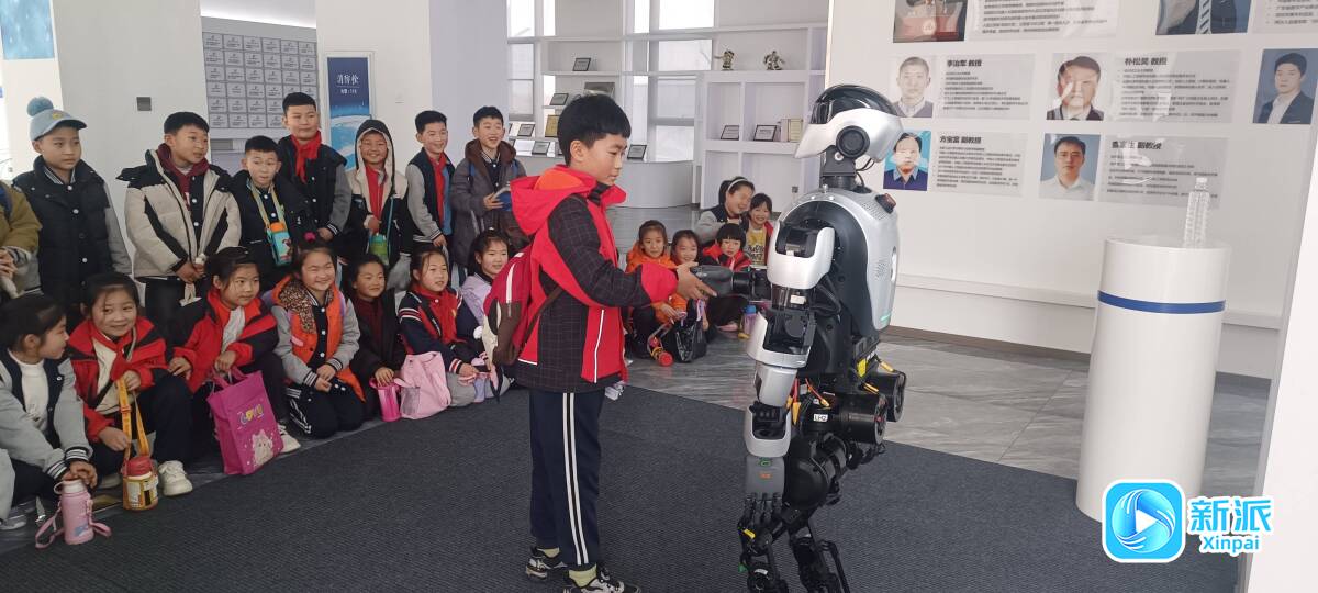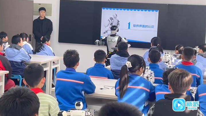 樂(lè)聚機(jī)器人走進(jìn)學(xué)校課堂,與學(xué)生們互動(dòng)。